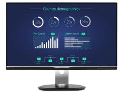 Displeje IPS využívají pokročilou technologii, která přináší zvláště široké úhly sledování 178/178 stupňů: displej lze tedy sledovat téměř z libovolného úhlu, dokonce i z úhlu 90 stupňů v režimu Pivot (Otáčení). Na rozdíl od standardních panelů TN poskytují displeje IPS pozoruhodně ostrý obraz se živoucími barvami, takže jsou ideální nejen pro fotografie, filmy a procházení internetu, ale lze je využít i pro profesionální aplikace, které za všech okolností vyžadují přesné barvy a konzistentní jas.